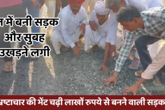रात में बनी सड़क सुबह उखड़ने लगी; विरोध के बाद भी मौके पर नहीं पहुंचे जिम्मेदार अधिकारीसांचौर क्षेत्र के जाजुसन गांव में बन रही सड़क अब विवादों में घिर गई है। ग्रामीणों ने निर्माण कार्य में घटिया सामग्री के इस्तेमाल का आरोप लगाते हुए जोरदार विरोध प्रदर्शन किया और काम रुकवा दिया। बड़ी संख्या में ग्रामीण मौके पर एकत्रित होकर…